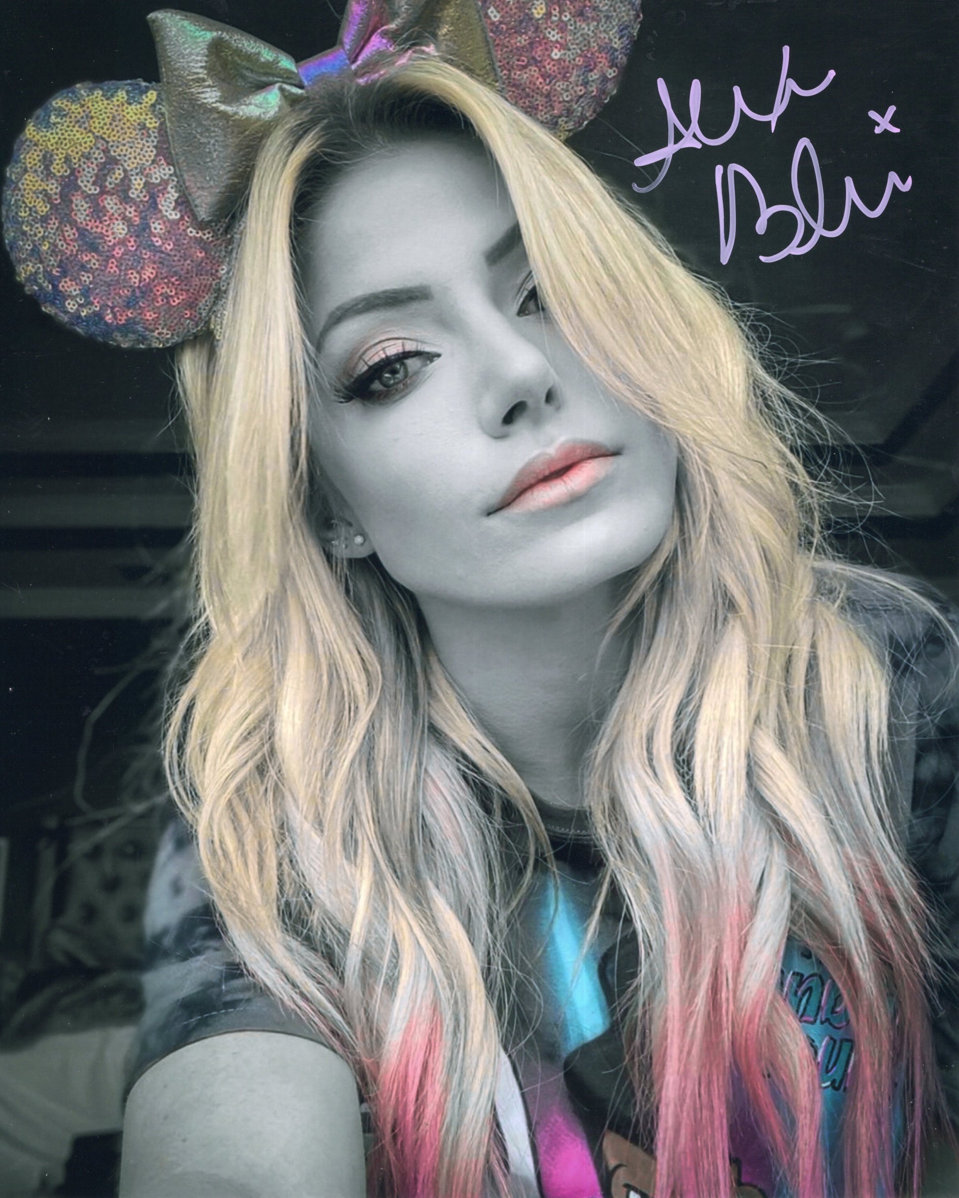 This is an Alexa Bliss Funhouse metallic. FUNHOUSE METALLICS ULTRA HD pieces are SUPER CLEAR photographs signed in brilliant colors. This great 8x10 will ship in a toploader sandwiched between 2 pieces of cardboard.