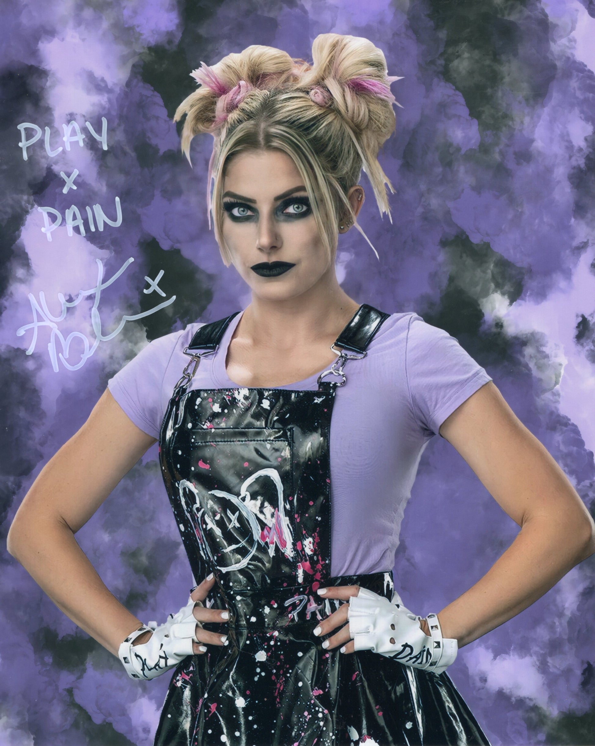 This is an Alexa Bliss Funhouse metallic. FUNHOUSE METALLICS ULTRA HD pieces are SUPER CLEAR photographs signed in brilliant colors. This great 8x10 will ship in a toploader sandwiched between 2 pieces of cardboard.