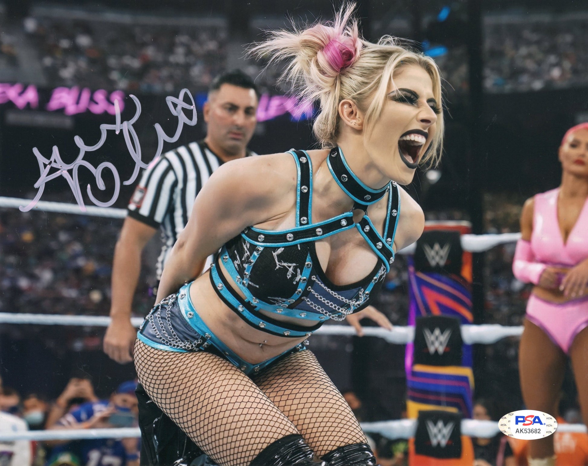 This is an Alexa Bliss Funhouse metallic. FUNHOUSE METALLICS ULTRA HD pieces are SUPER CLEAR photographs signed in brilliant colors. This great 8x10 will ship in a toploader sandwiched between 2 pieces of cardboard.