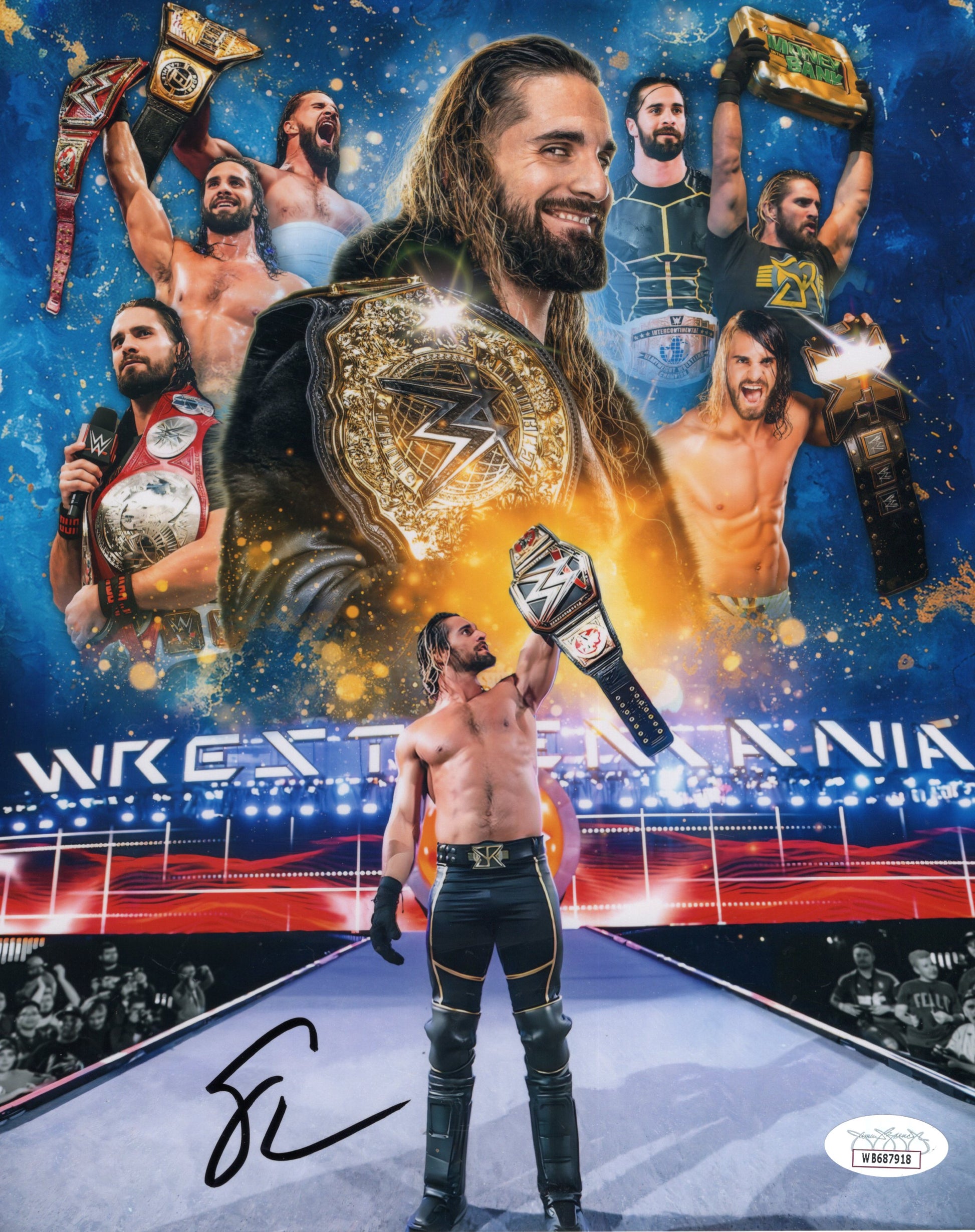 This is a FUNHOUSE Metallic Seth Rollins 8x10. It is absolutely beautiful in person. It is JSA certed Top quality!